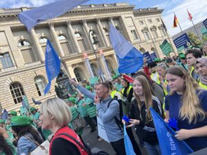 Mit Transparenten, Plakaten und viel Energie machten die Teilnehmenden deutlich: Die Krankenhausreform darf nicht am Sparwillen des Landes scheitern. Gesundheit braucht Zukunft – und die gibt es nicht zum Nulltarif!
