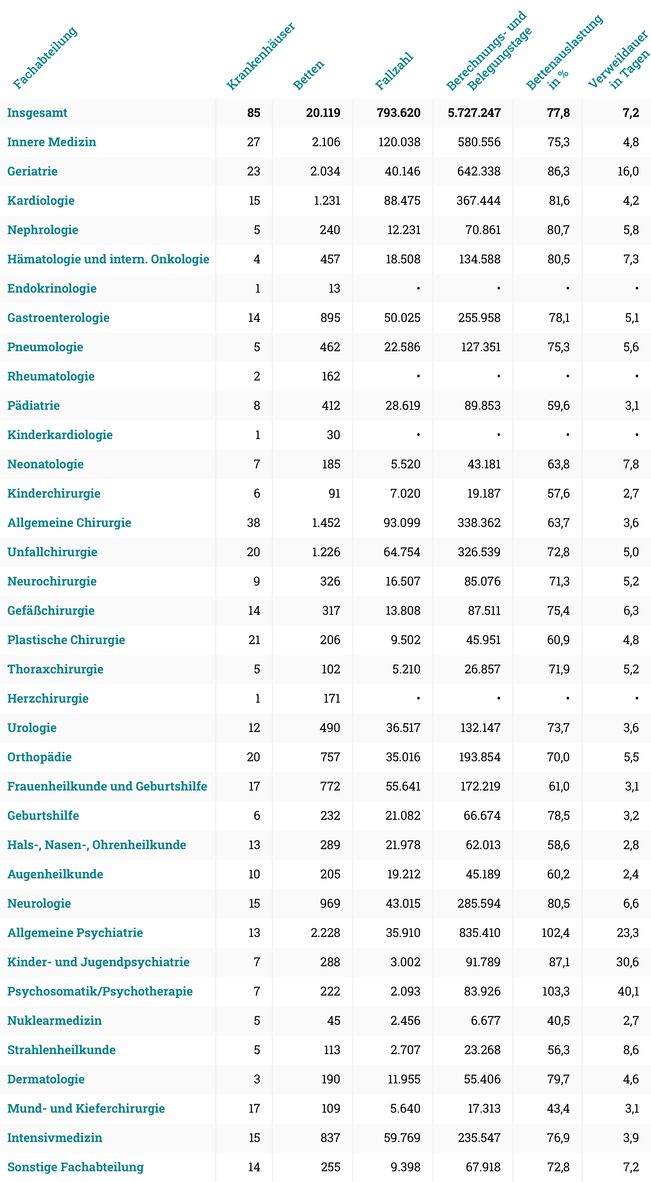 Statistisches Bundesamt, Grunddaten der Krankenhäuser, 2024, Tabelle 23111-37.