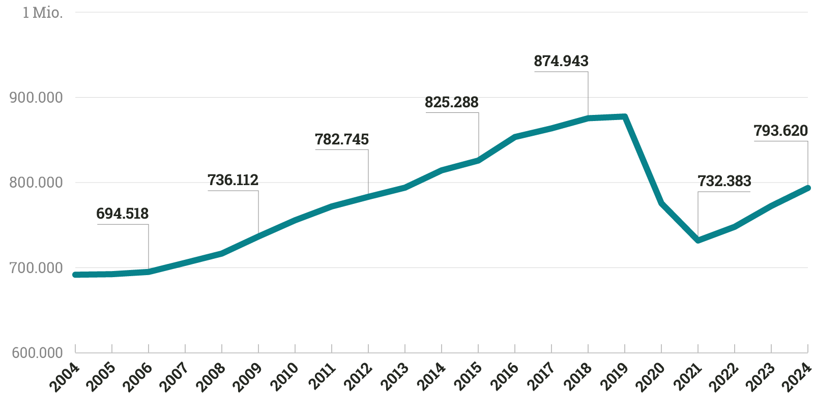 Quelle: Statistisches Bundesamt, Fachserie 12, Reihe 6.1 (Grunddaten 2024); eigene Berechnungen.