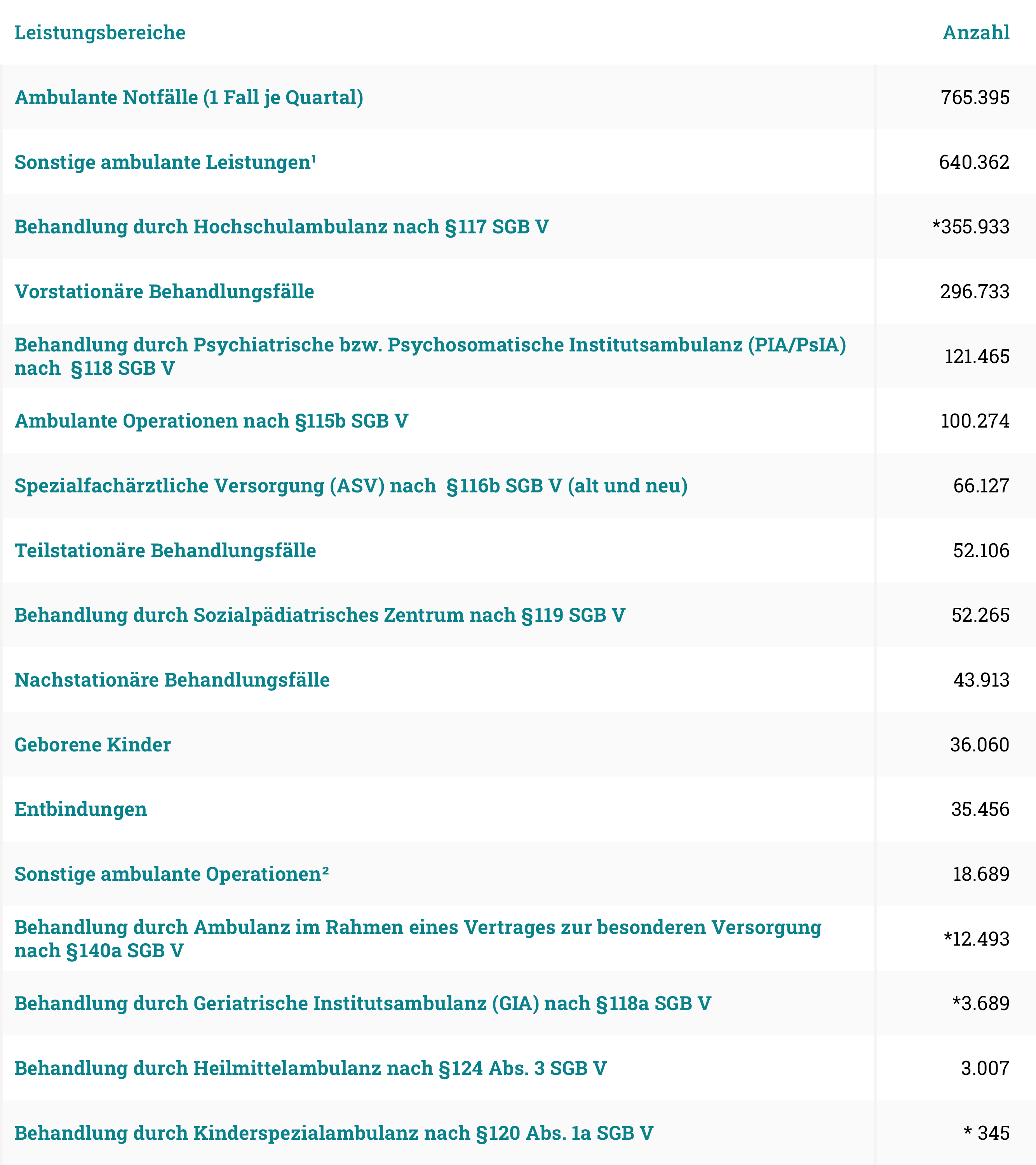 ² Sonstige ambulante Leistungen (ohne sonstige Operationen), die vom Krankenhaus erbracht werden, aber nicht über